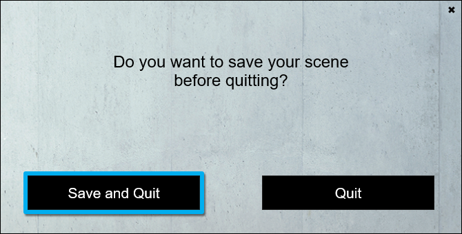 2.3: Lumion also asks you if you want to save a copy of the current Scene (including models) when you exit the program. We strongly recommend that you use this function to save regular copies of your Scene and models: