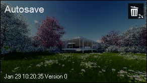 3.1: Lumion 7.5 and older: Lumion 7.5 automatically saves a copy of the current Scene (excluding Imported Models) when you load a new Scene. The Scene file is called AutoSave and is available in the Load Scene tab. However, the AutoSave file will be overwritten every time you load a new Scene.