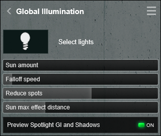 The Global Illumination Effect in Lumion analyses surfaces that are lit up by the sun or by artificial light sources. The effect then places probe lights that emit light in all directions near the lit surfaces to simulate reflected light. These probe lights are reshuffled when the sun and other objects move in a video.