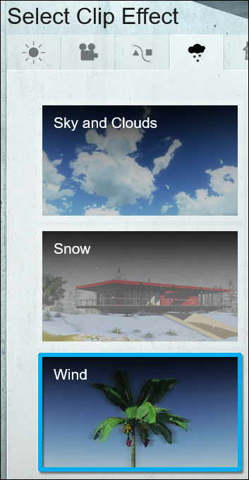 1.1: To prevent the lighting from flickering in a Clip that uses the Global Illumination Effect, everything has to remain static, i.e. no moving sun, no animations and the Wind Effect should be set to a low value so that trees don't sway too much in the wind.