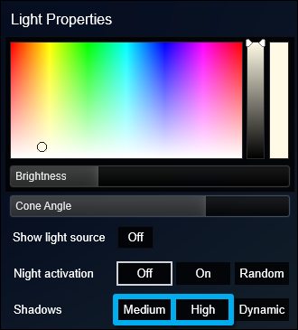 By default, shadows from Spotlights that are set to Medium or High are only rendered once at the start of Movies and Clips because it is quite taxing for your hardware to update the Spotlight shadows every single frame.