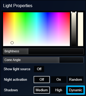 With a lot of Spotlights in your Scene, this has the potential to increase render times substantially. You should only use the Dynamic shadow setting for Spotlights that are lighting up moving objects such as animated cars or people in your Movie.