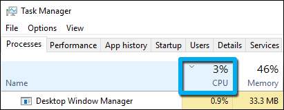 2.2: Then click on the CPU column so the most demanding processes are at the top: