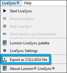 3.2: Alternatively, use the Export as COLLADA file from the LiveSync menu: