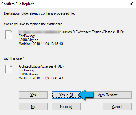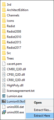 1.6: Unzip the contents of the .ZIP file in the Lumion 9.0 installation folder: