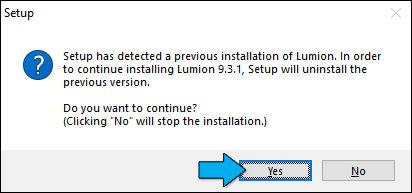 - If Lumion 9.3 is already installed, the Lumion 9.3.1 installer will ask you if you want to install Lumion 9.3.1 in the same folder. We recommend clicking on 'Yes' after making sure that Lumion 9.3 is not running.